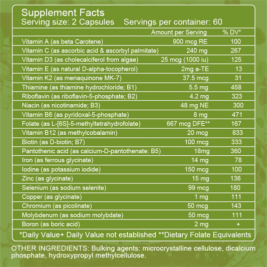 (2 Pack) Multivitamin & Minerals Capsules with Iron, Methylfolate, Zinc, Vitamin D3 & K2 To Improve Immunity Boost Energy Healthy Hair & Skin & Nails for Men Women