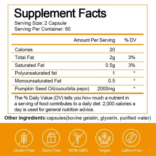 (2 Pack)Pumpkin Seed Oil Capsules (2,000mg/serving) - Pumpkin Seed Oil Supplement for Hair Growth, Youthful Skin, Prostate Health, Urinary Tract Support