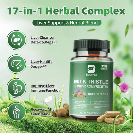 Milk Thistle Capsules, Silymarin Marianum & Dandelion Plus Turmeric Support Liver Function, Antioxidant, Overall Health,120 Count