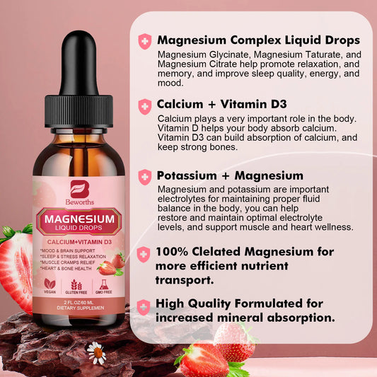Magnesium Glycinate Supplement Complex Vitamin Liquid Drop Strawberry Flavor