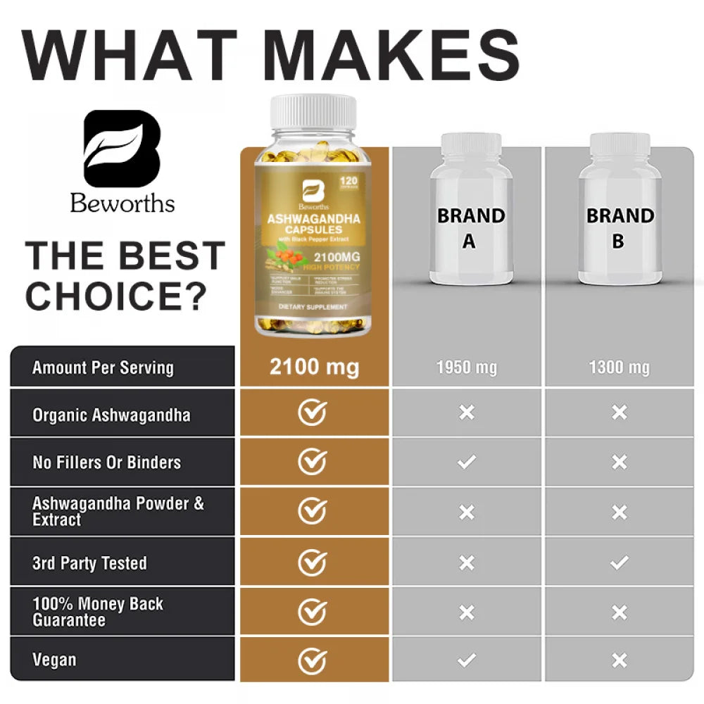 Ashwagandha Capsules 2100mg - Organic Ashwagandha Supplement - Stress Relief, Mood Enhancer & Natural Energy Support Supplement for Men and Women - 360 Softgels(3 PACK)