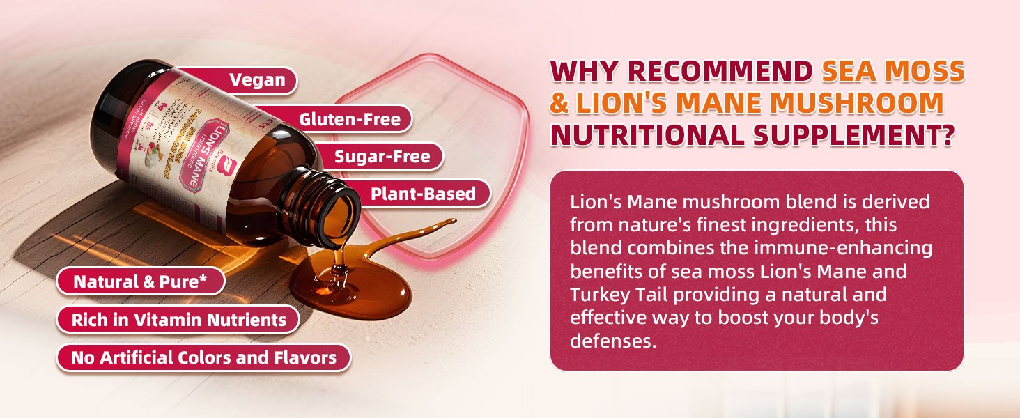 - ¡¾BRAIN BOOST & MEMORY CLARITY¡¿- Sea Moss & Lion's Mane liquid drops enhance your brain and memory performance with our Lion's Mane supplement. Lion's Mane turkey tail mushroom liquid extract is perfect for improving memory, focus, and mental* clarity*, serving as your daily companion for a sharper mind and better decision-making.