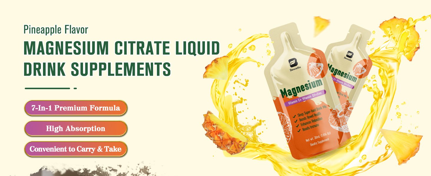 Magnesium Citrate Liquid Supplement 280Mg, with Bromelain, Vitamin C, D3, B6, Zinc, High Absorption Magnesium Citrate Oral Solution
