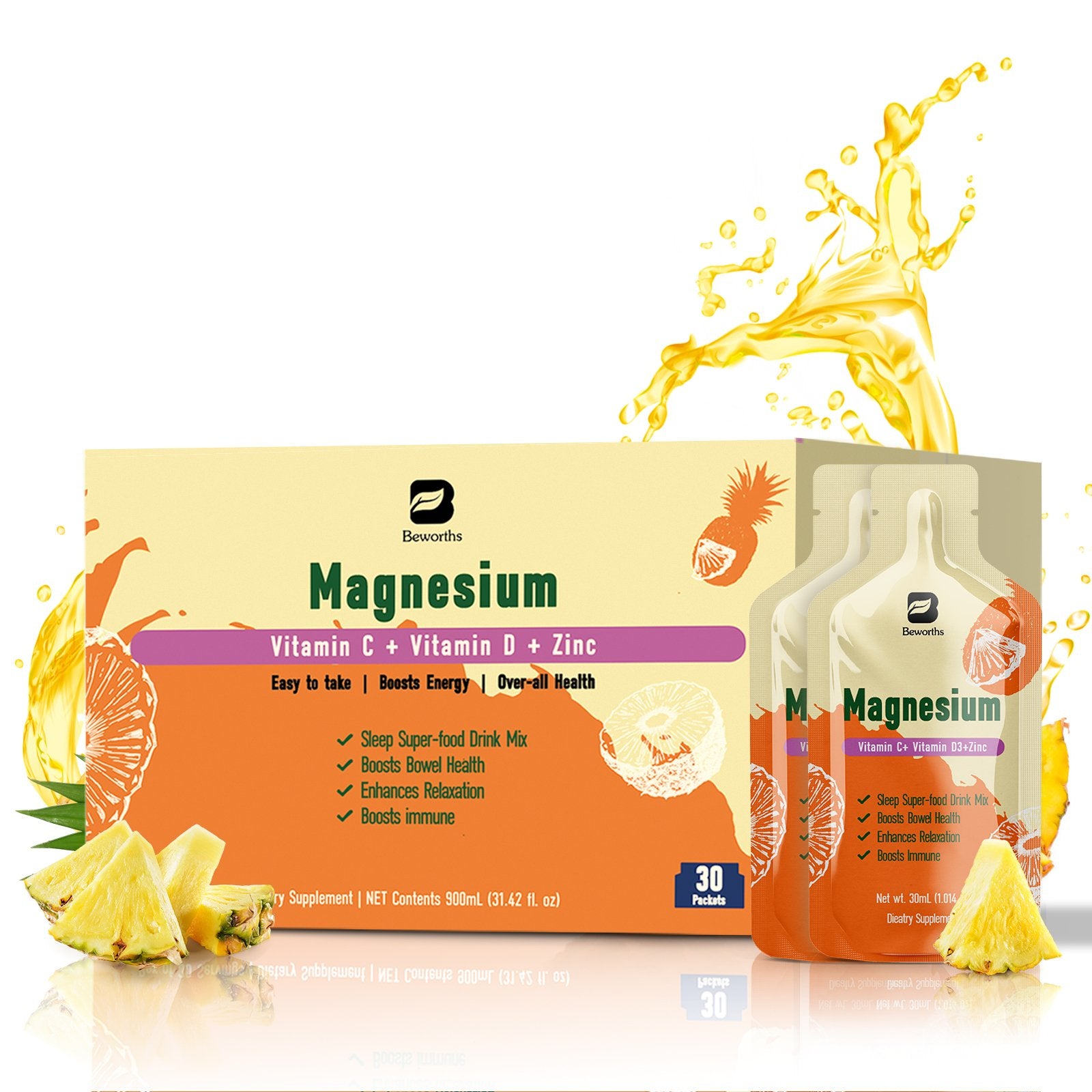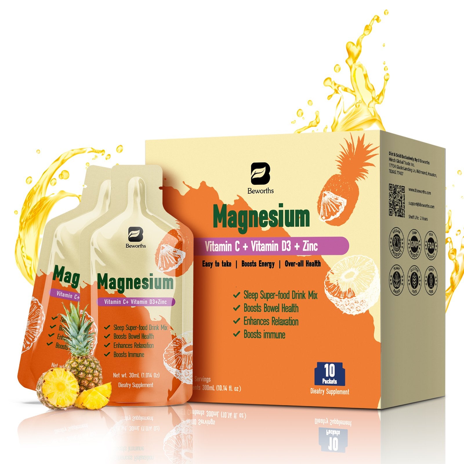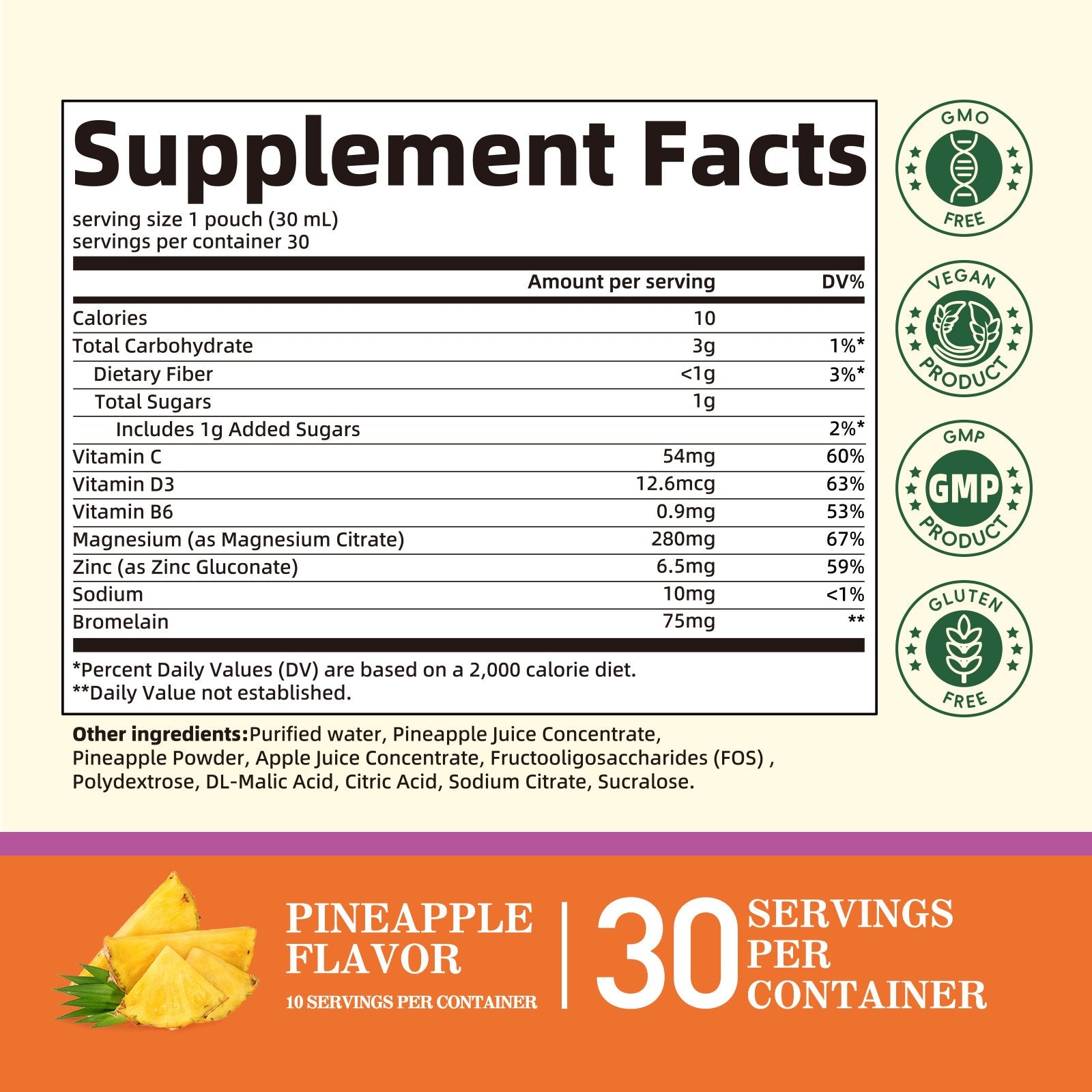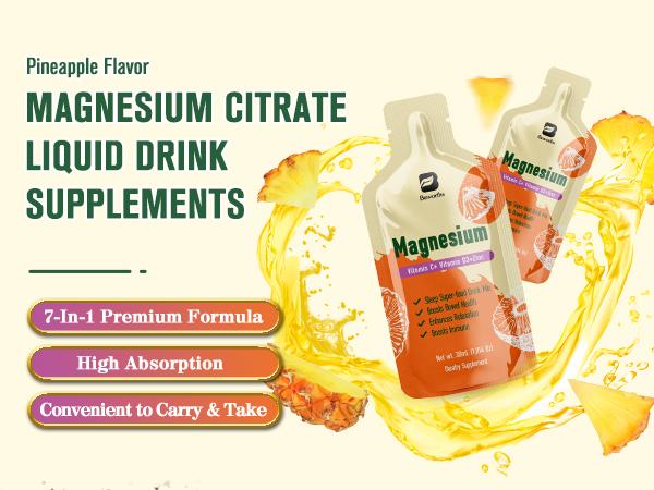Magnesium Citrate Liquid Supplement 280Mg, with Bromelain, Vitamin C, D3, B6, Zinc, High Absorption Magnesium Citrate Oral Solution, Magnesium for Constipation, Zzz & Energy, Pineapple, 10 Fl Oz