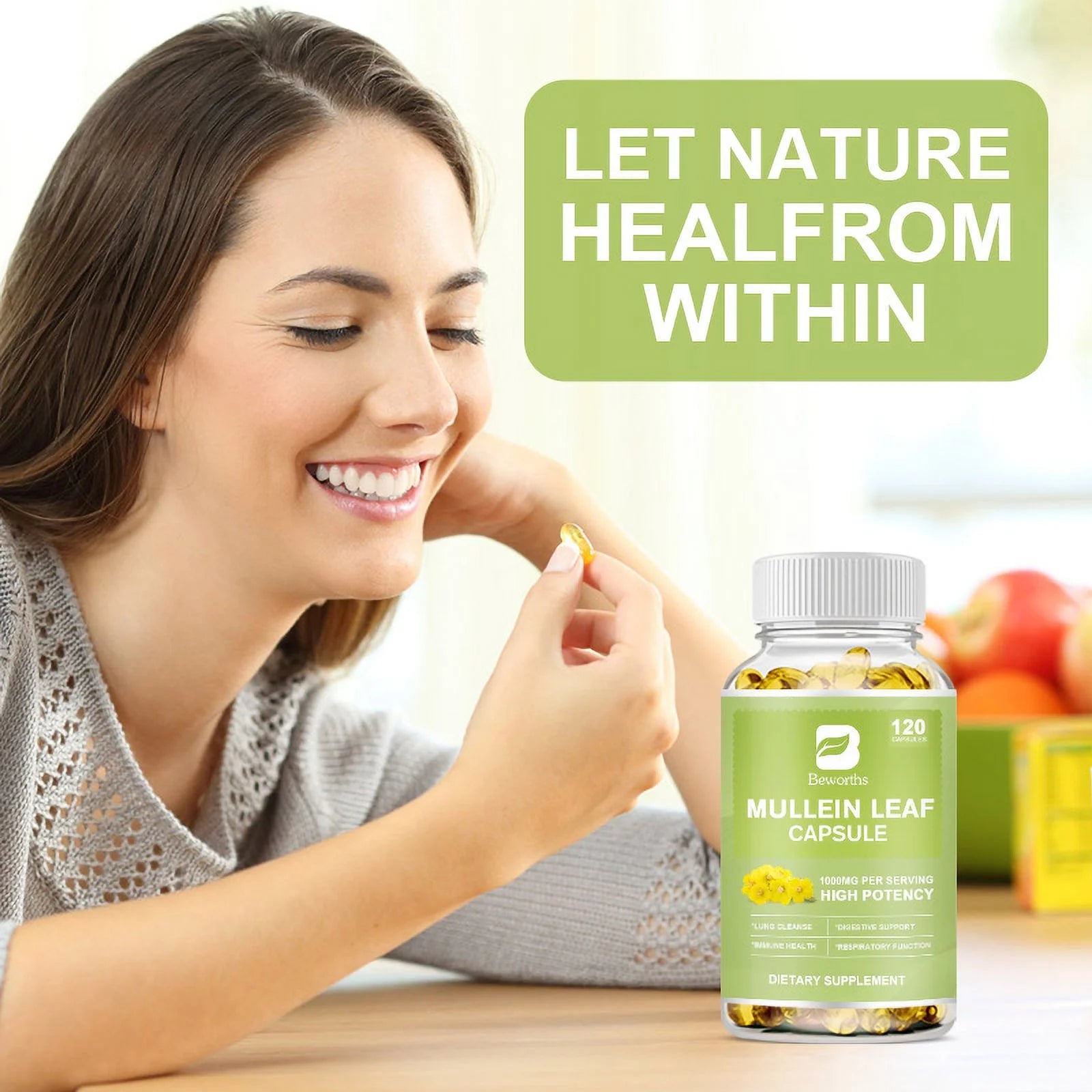 Mullein Leaf Capsules - Organic Mullein Leaf Extract for Lung - 1000mg 240 Vegan Caps