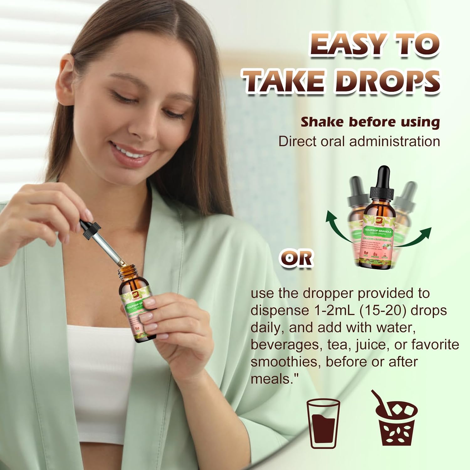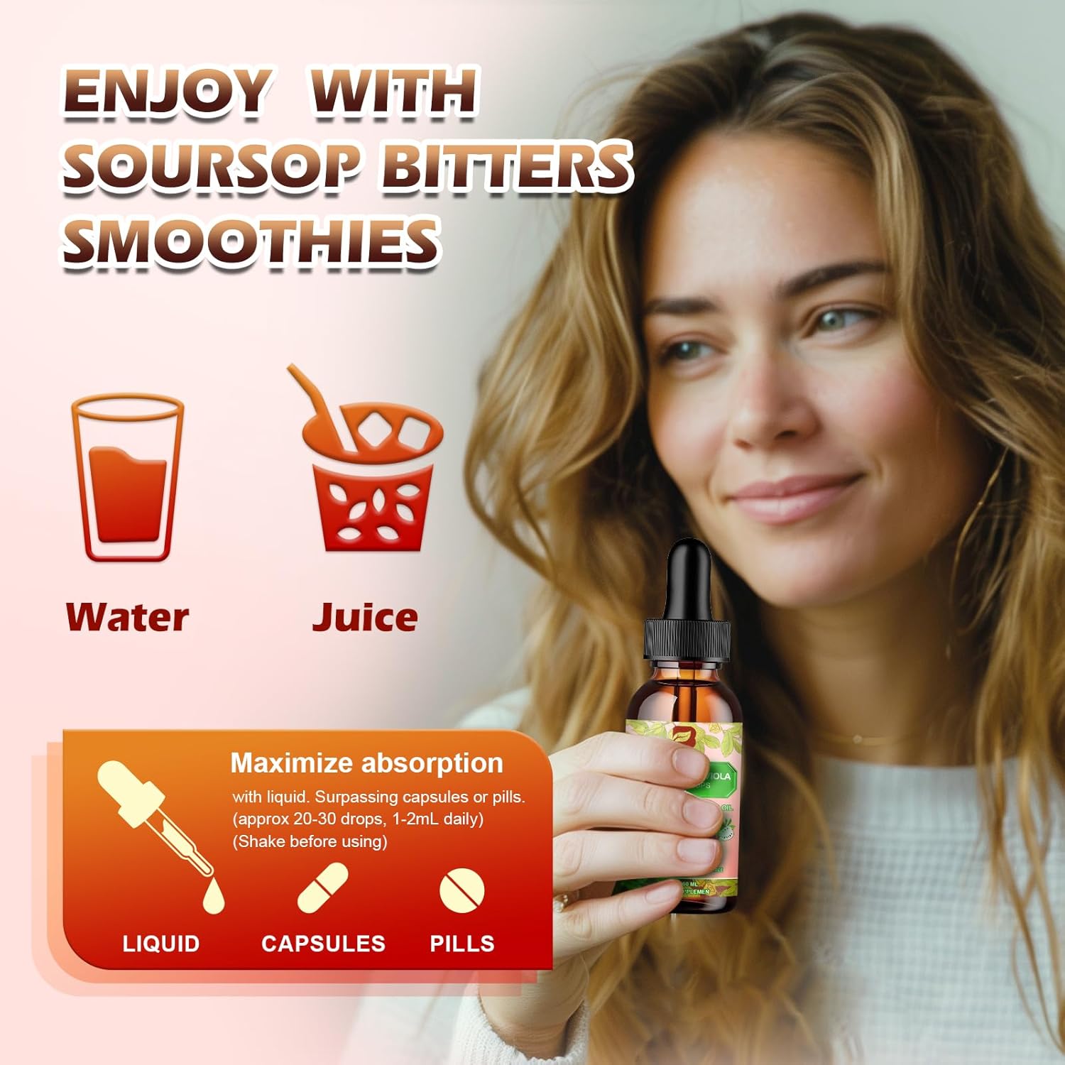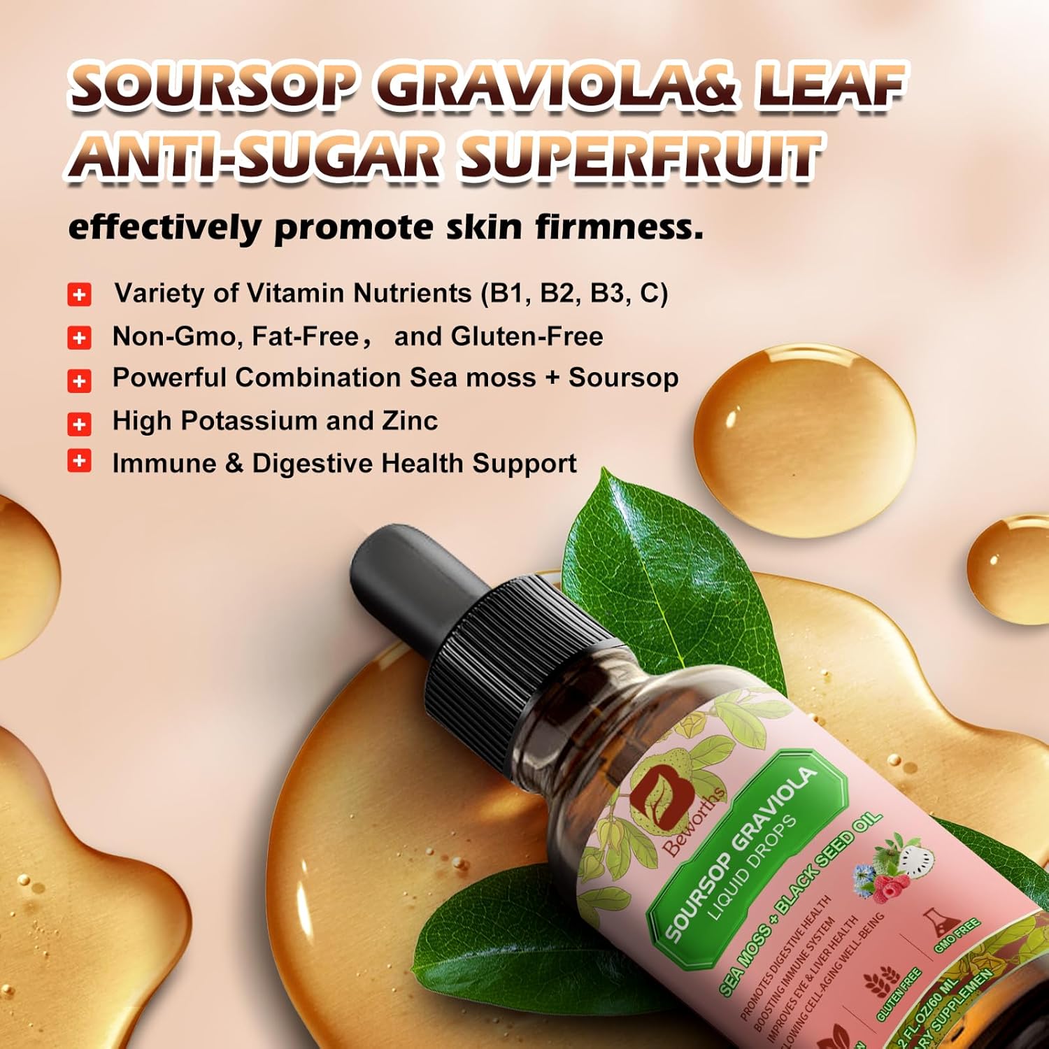 Soursop Bitters Liquid Drops with Irish Sea Moss & Black Seed Oil – Antioxidant & Immune Support, Gut Cleanse & Detox – Raspberry Flavor, 2 fl oz